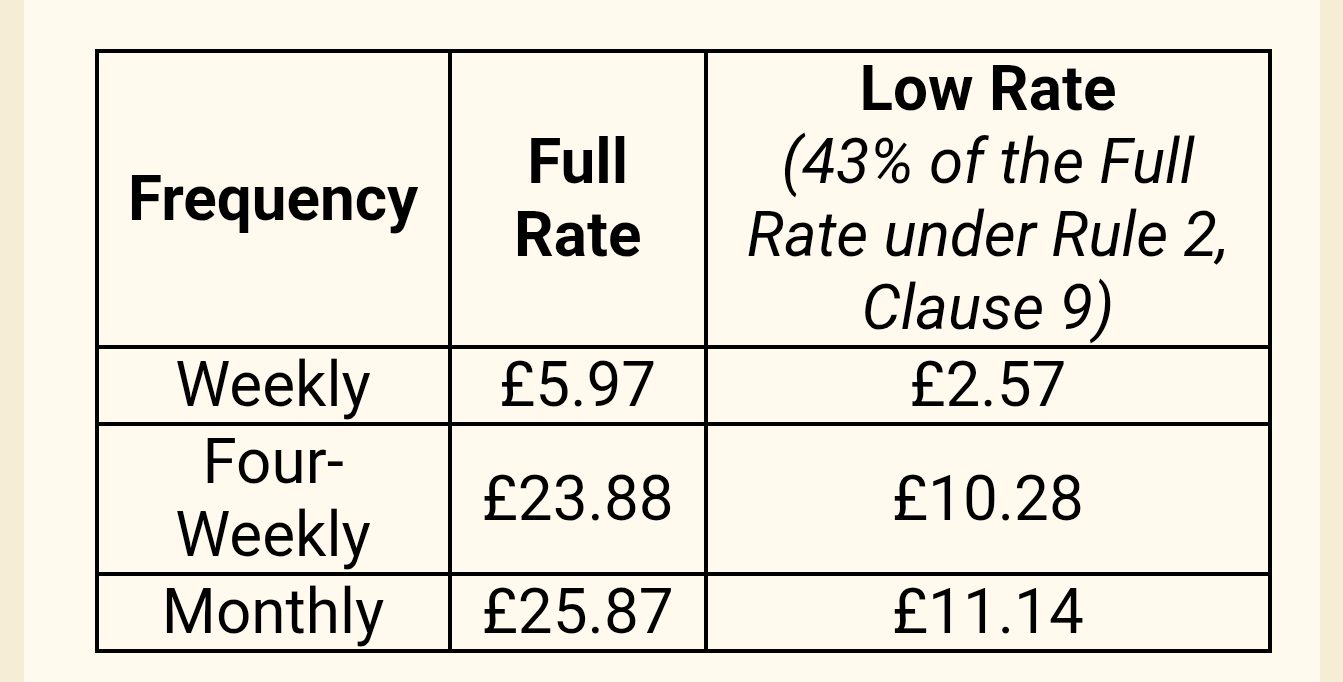 With the announcement of the September 2025 RPI (4.5%), having considered the Union's income, expenditure, and membership levels, the full contribution rate will increase by 26p per week (4.5%) to £5.97 per week.