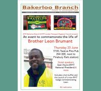 Bakerloo branch and LT regional Council have organised an evening for Leon's friends/family and comrades to gather to celebrate his life.