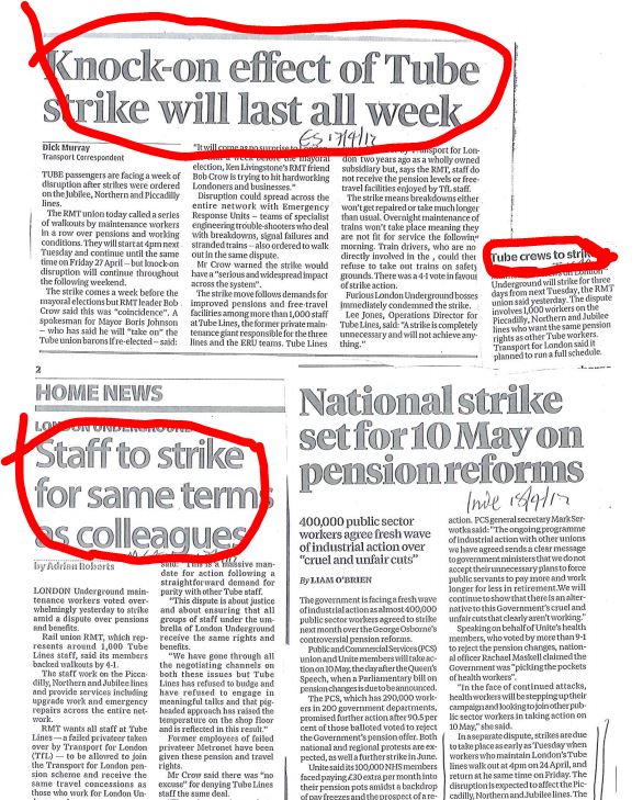 There has been widespread coverage in the media, following RMT Tube Lines members strong call for strike action to fight for pensions parity with their colleagues across LUL.