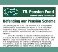 You will be aware that the RMT sent an email to our LUL members on 4th January 2021 outlining our disgust and opposition to the findings of the Independent Panel Review in respect of the TfL Pension Fund. As you will recall the Independent Panel Review makes the assumption that the TfL Pension Fund is expensive, outdated and must be reformed, a suggestion that this union totally rejects.