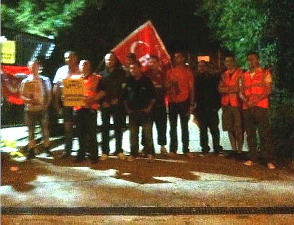 ... while Lifts & Escalators members picket Frank Pick House --> ... and the flags fly at Cockfosters!