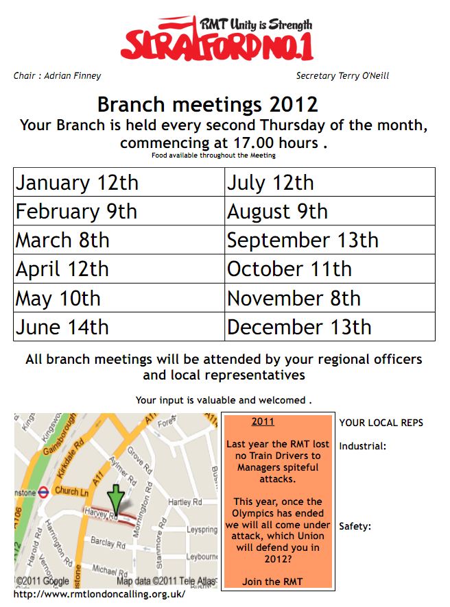 The next Stratford no.1 branch meeting will take place at the above date from 5pm at the Leytonstone & District ex-Servicemens Club, Harvey Road, Leytonstone, E11 3BD. (Map.)
